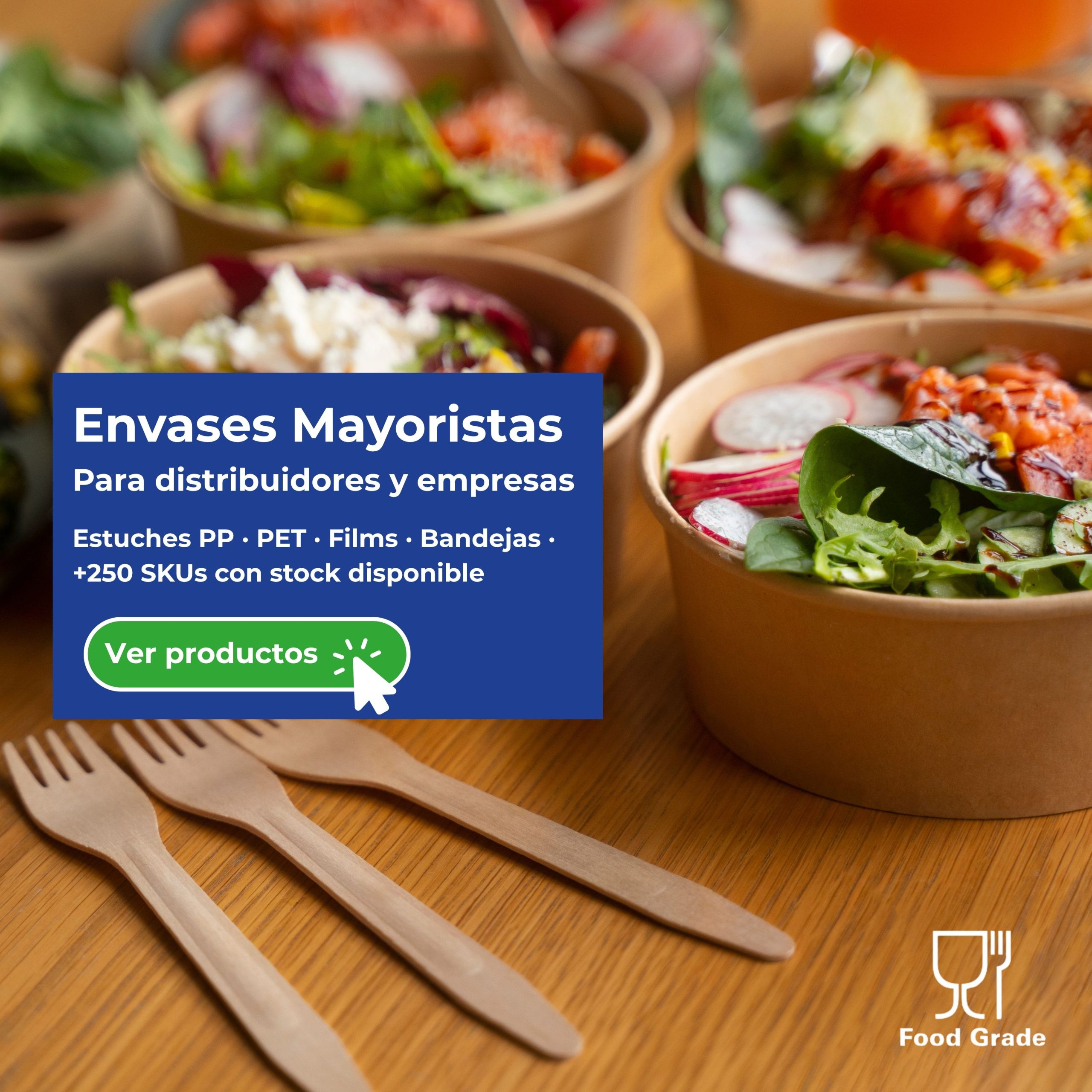 Ofrecemos una amplia gama de productos de packaging descartable con enfoque eco-friendly para food service, catering y comercio en general.