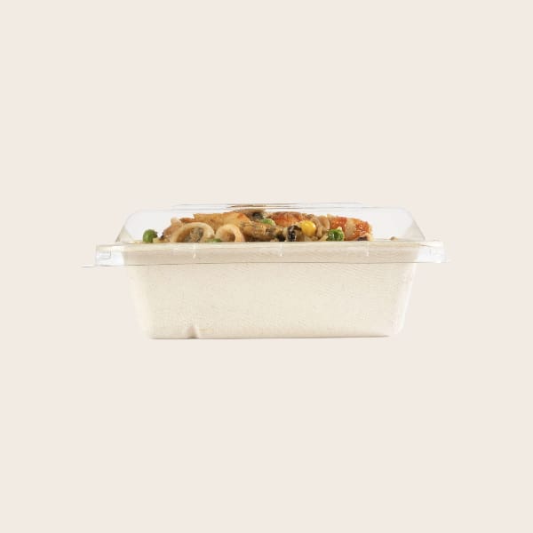 La base rectangular de Caña de Azúcar de 720 cc es una opción Blanco Natural y ecológica para food service. Es apta para microondas y heladera, lo que es un gran valor agregado. Con la certificación INAL para la confianza garantizada, su embalaje de 600 unidades optimiza la logística mayorista.