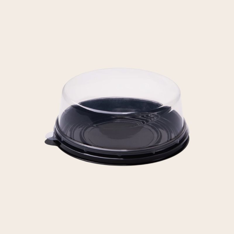 Diseño de Alta Visibilidad: La tapa tipo domo cuenta con una claridad excepcional y un acabado cristalino que permite una visión de 360° del producto, protegiendo las decoraciones delicadas y el glaseado sin tocarlos.