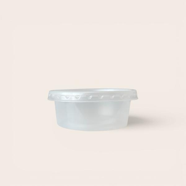 Producto Clave para Food Service: Contenedor circular de Polipropileno (PP) con capacidad de 6oz, diseñado para el porcionamiento higiénico de alimentos. Es la solución estándar para el despacho de acompañamientos en servicios de Comida para Llevar.